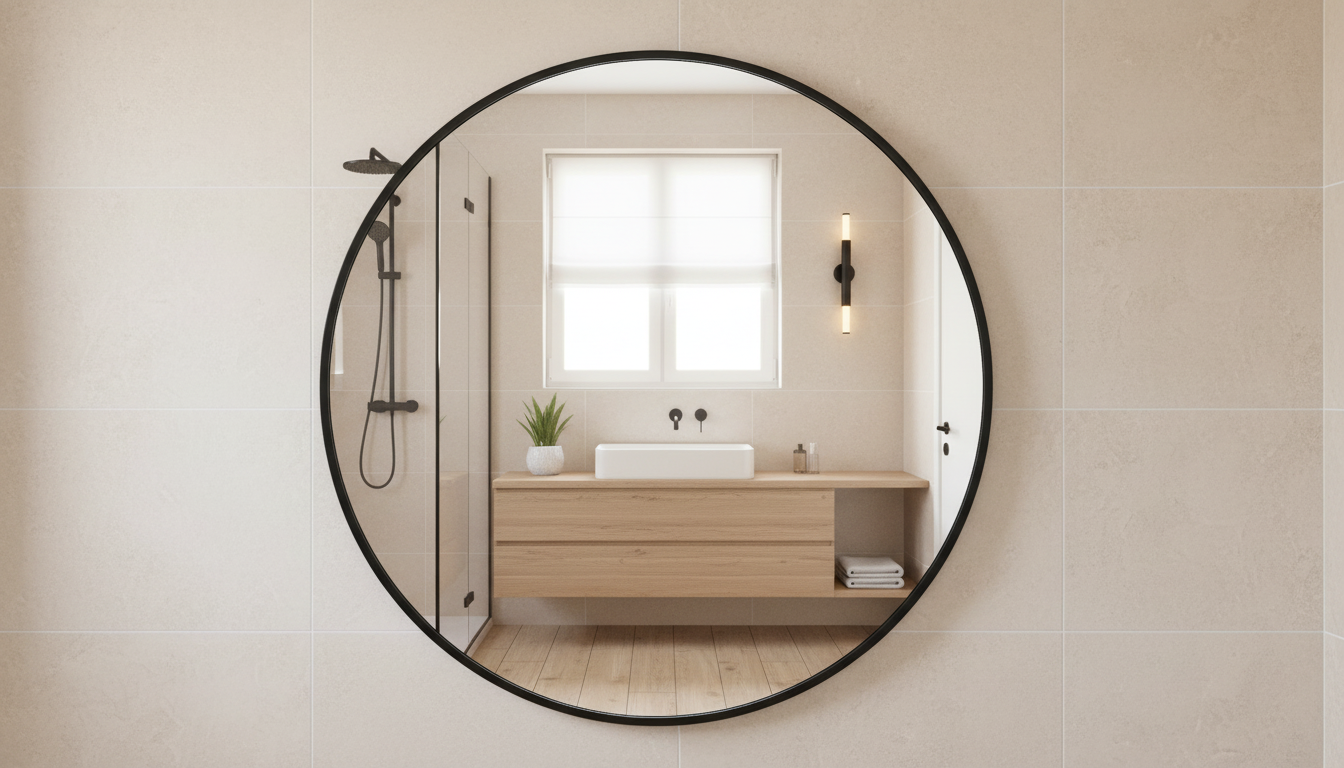Klasyczne okrągłe lustro w czarnej ramie jest eleganckie i ma ponadczasowy design. Idealnie pasuje do nowoczesnych, minimalistycznych, skandynawskich jak niebanalnych wyrazistych wnętrz w stylu loftowym.